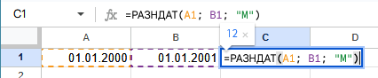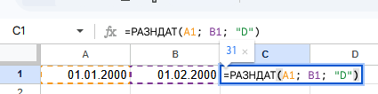 РАЗНДАТ (DATEDIF) — считает разницу между датами в днях, месяцах или годах.