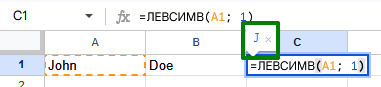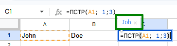 =ЛЕВСИМВ(A1; 3) (=LEFT(A1, 3)) — первые 3 символа из ячейки A1.