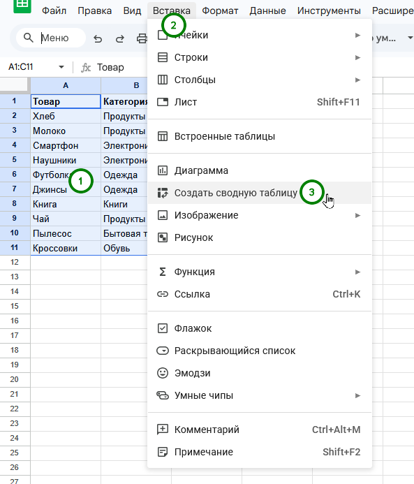 Так создаётся сводная таблица в гугл таблицах за пару кликов.